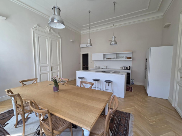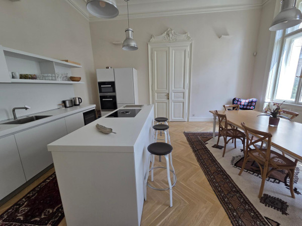 District V • 100 m² • street view • 2 bedrooms • 2 bathrooms • living room • detached kitchen with diner • 3rd floor with elevator • storage. Contact us for all details and information about this property.