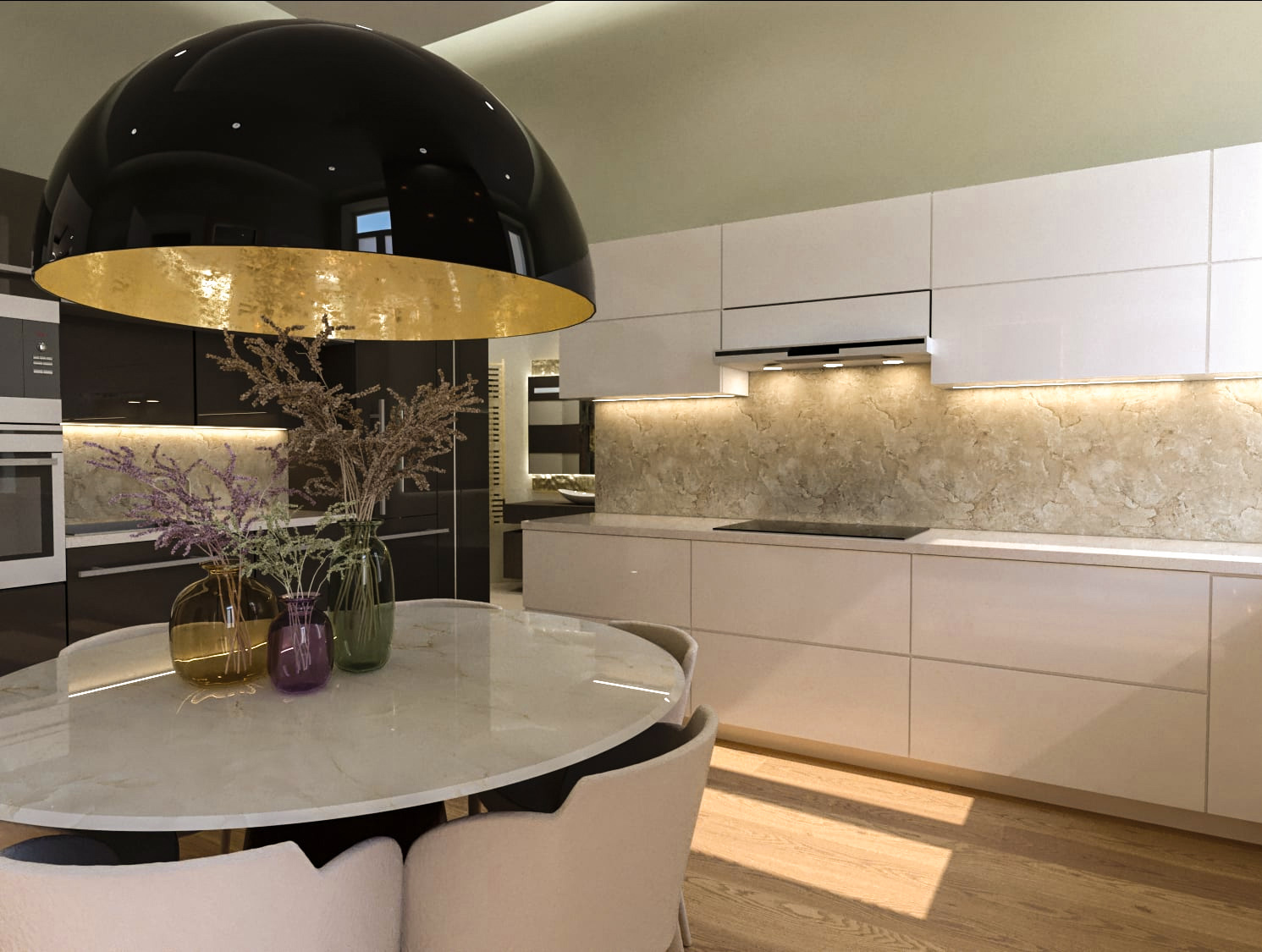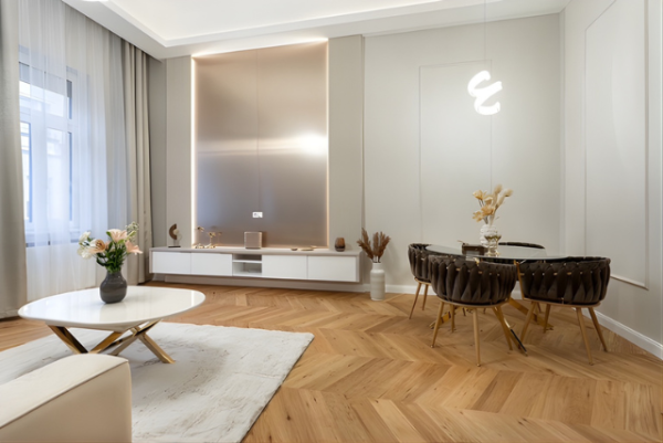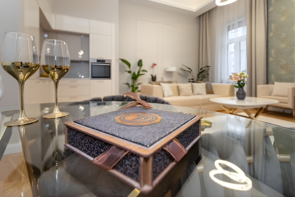 District V • 92 m² • 6 m² balcony • Danube and Citadel view • 2 bedrooms • 2 bathrooms • living room with American kitchen.• parking