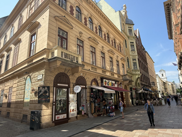District V • ground floor • street entrance • big windows • 195 m² • capacity: 50 customers • 2 floors • high pedestrian traffic