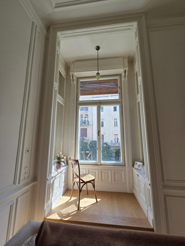 District VI • 2nd floor • 90 m² • street view • 2 bedrooms • 2 bathrooms • living room • detached kitchen
