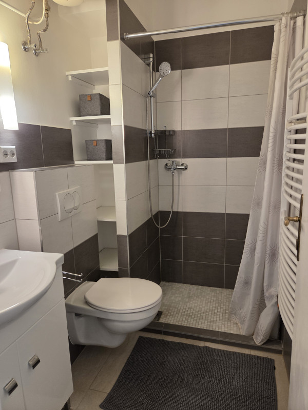 - Good layout: spacious living room, two bedrooms, kitchen, bathroom, guest WC
