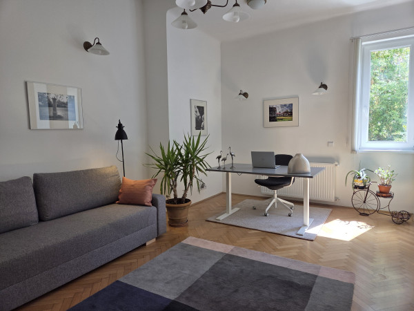Featuring high ceilings, large windows, and a well-proportioned layout, the property offers excellent potential for redesign—perfect for creating a stylish downtown residence or a high-yield investment. A rare feature in the city center, the apartment also includes a 2 m² balcony overlooking the quiet garden and street view.
