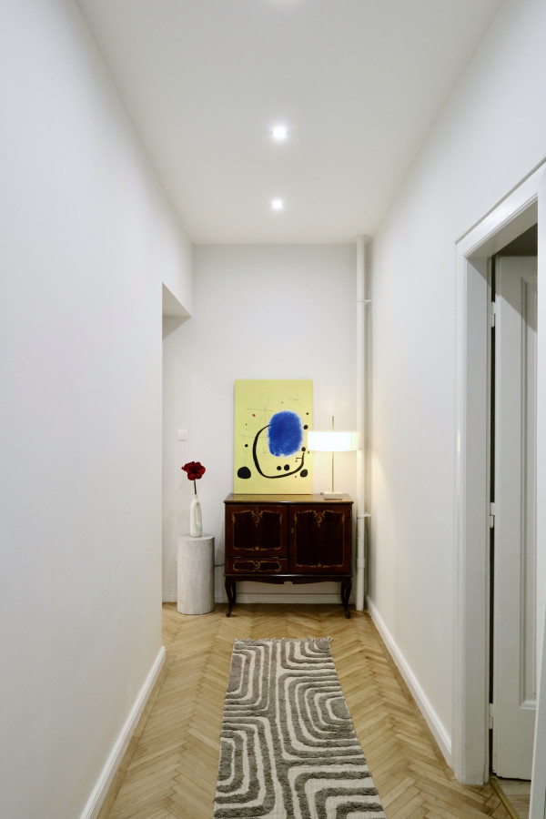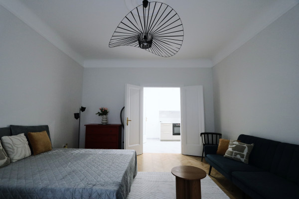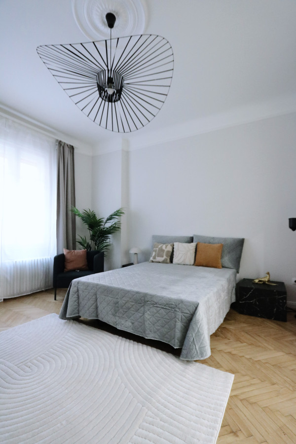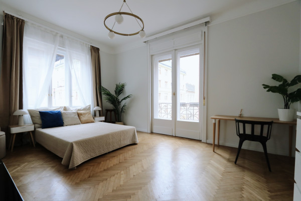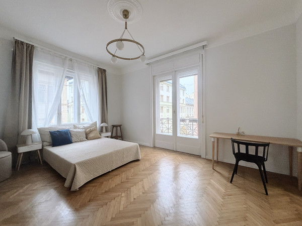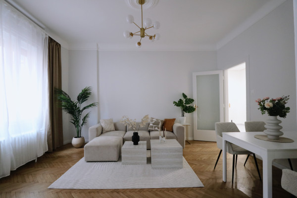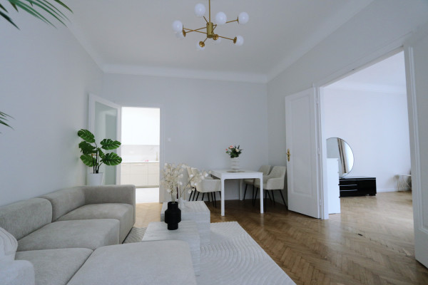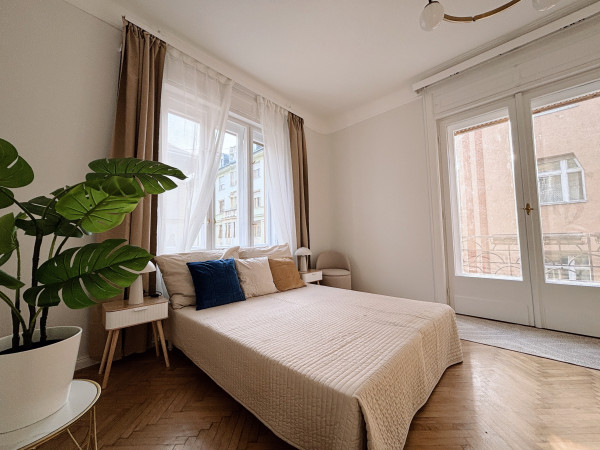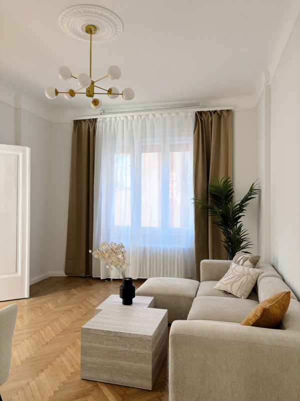 A beautifully renovated 80 m² bourgeois-style apartment with 3.6 m ceilings, offering a rare combination of historic charm, modern elegance, and exceptional functionality. Located in a well-maintained 1911 turn-of-the-century building designed by architect Jen Svarc, this residence provides a quiet, green outlook onto an ancient internal garden - giving the feeling of living outside the city while being in the heart of Budapest.