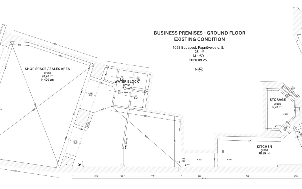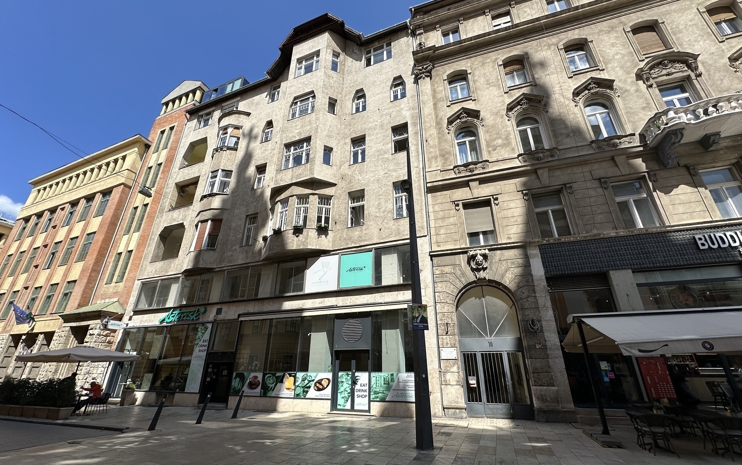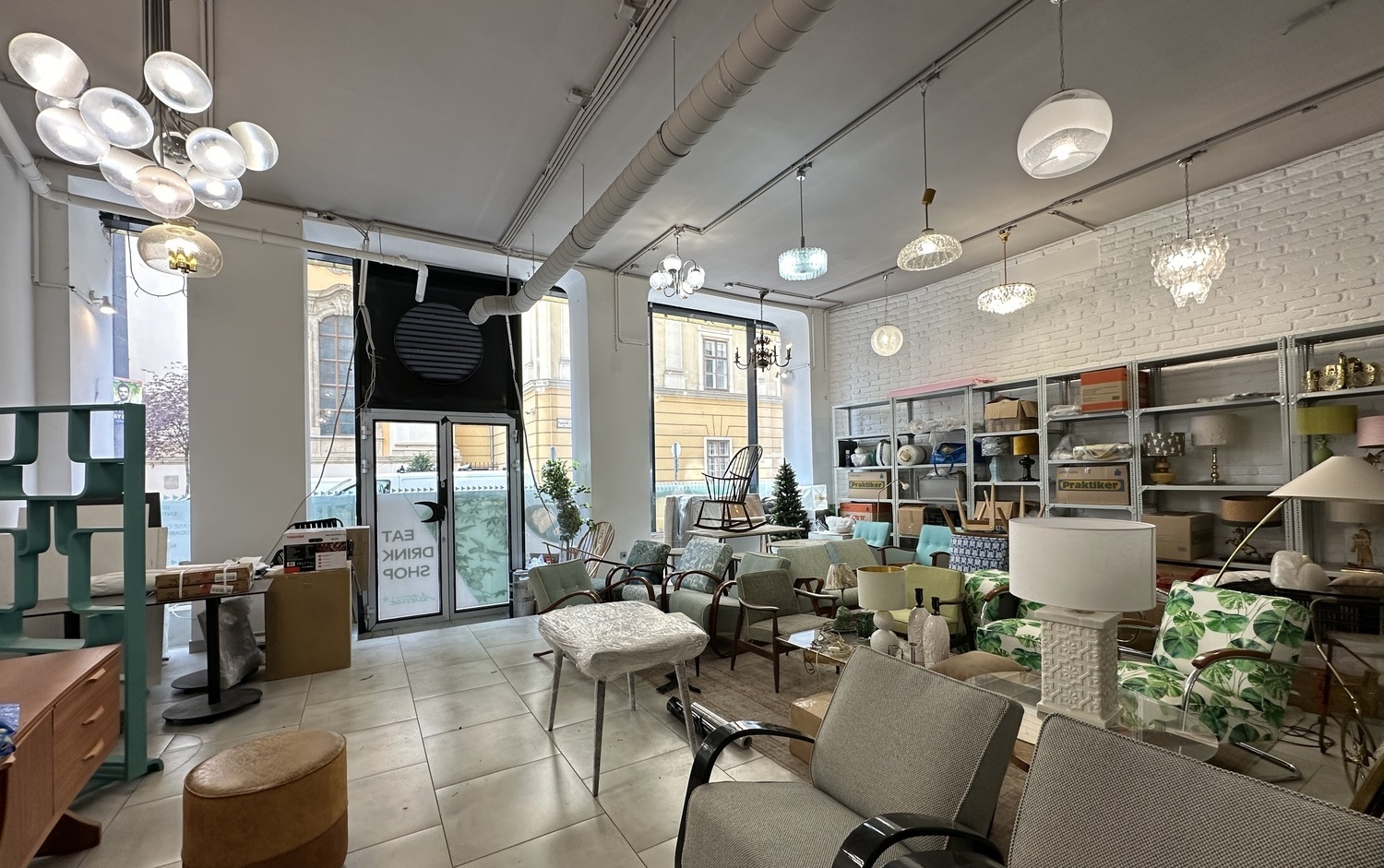 District V • ground floor • street entrance • big windows • 195 m² • capacity: 50 customers • 2 floors • high pedestrian traffic