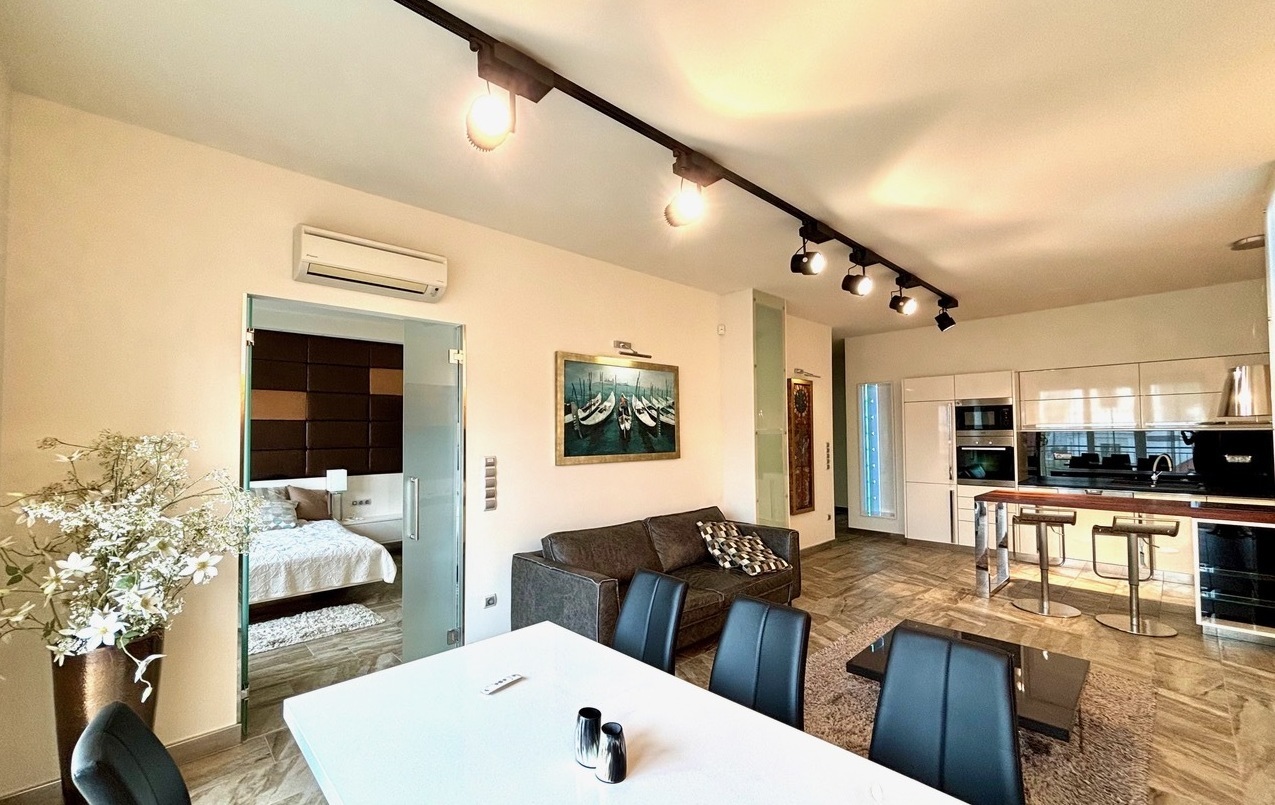District V • 92 m² • 6 m² balcony • Danube and Citadel view • 2 bedrooms • 2 bathrooms • living room with American kitchen.• parking